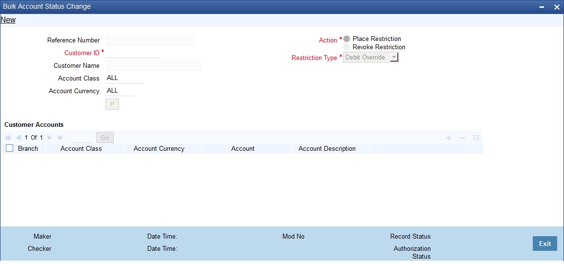 For detailed information on the Customer Account Closing Mode Maintenance screen, you can refer the Maintaining Customer Account Closing Modes sub-heading in this manual.
