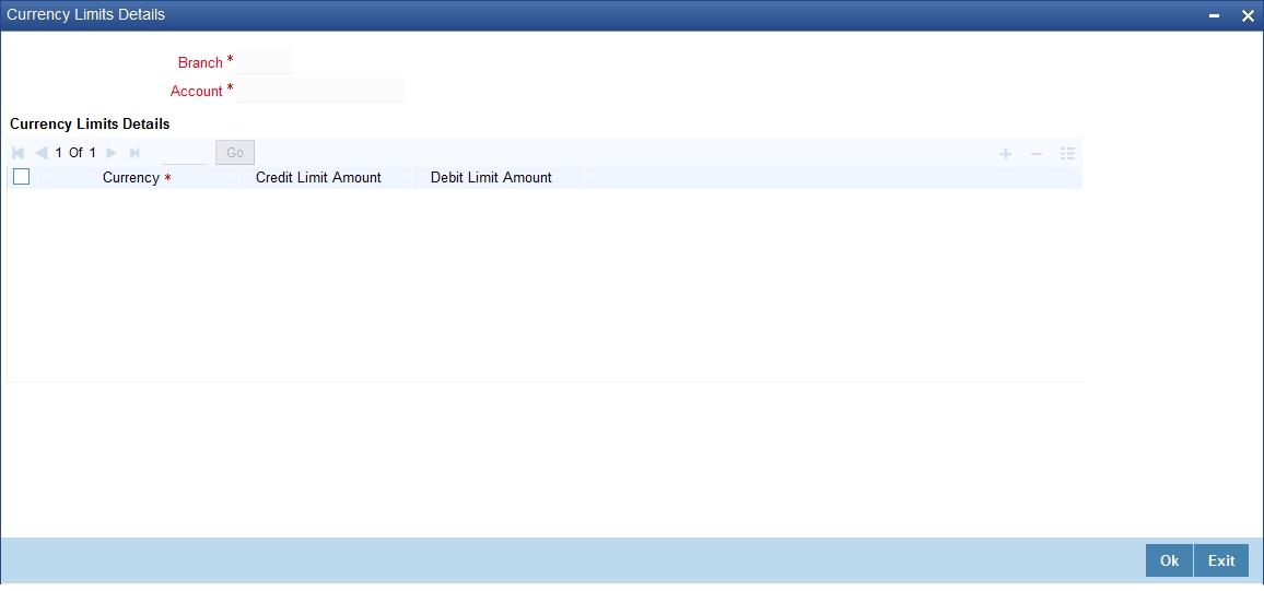 You have to identify the currency of the customer account. A list of all the currencies maintained in the system will be displayed in the available list. You can select the currency of transaction for the respective account. If the currency of the account is not defined for the current period in the ‘Turnover Limit Maintenance’ screen, you will not be able to save the account.