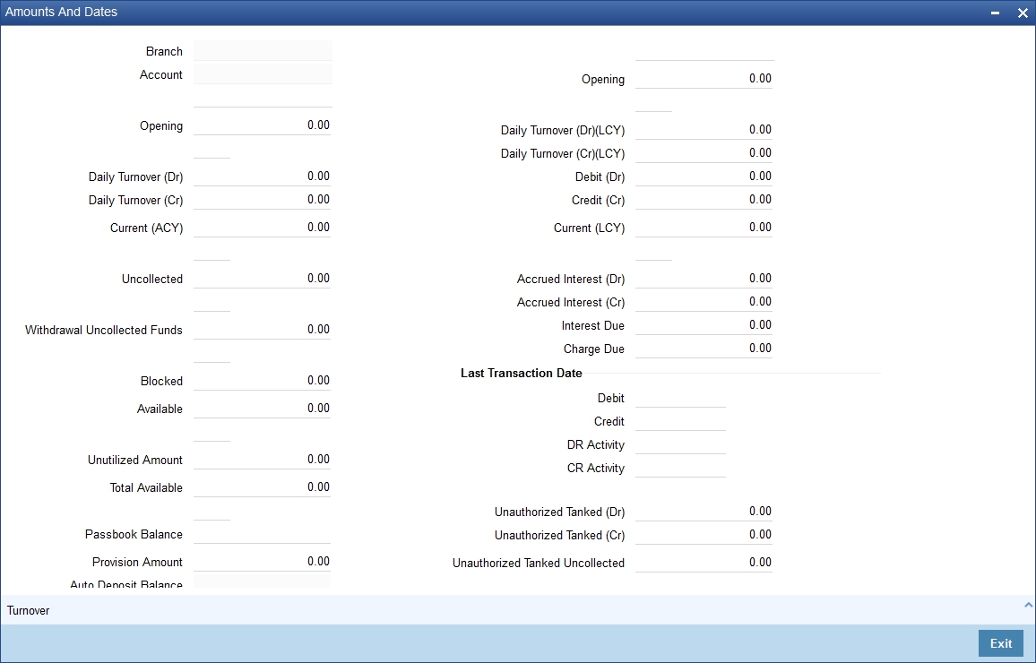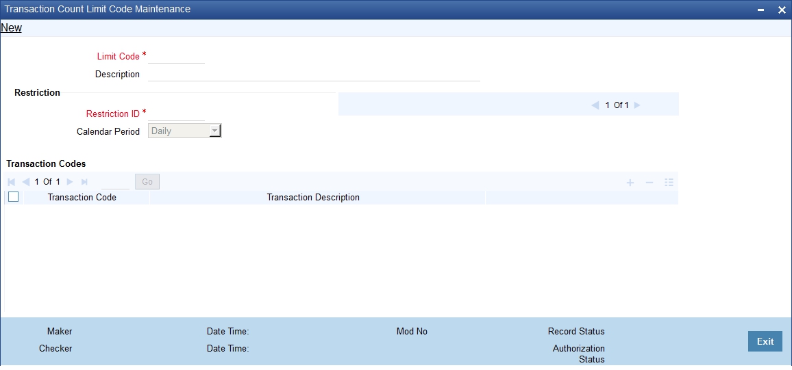 Refer the section ‘Maintaining Turnover Limits’ in the chapter titled ‘Maintaining Mandatory Information’ in this User Manual for details about the ‘Turnover Limit Maintenance’ screen.