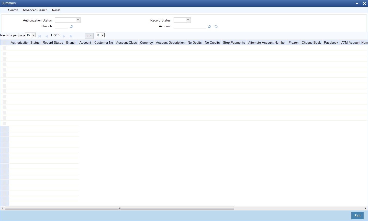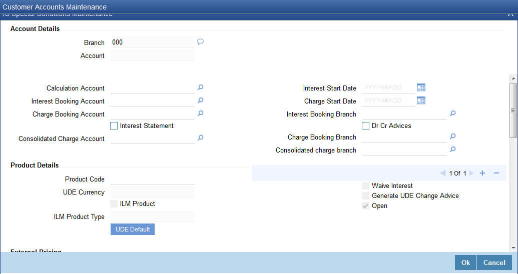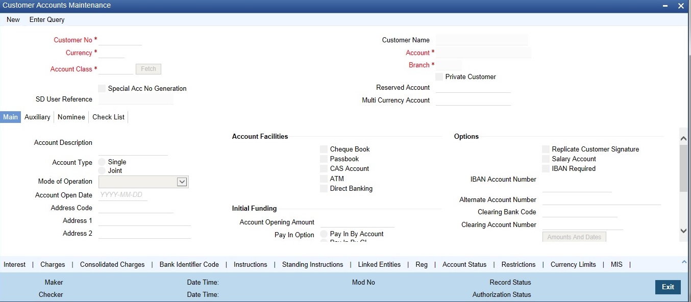 You can define customer accounts for all the customers of your bank through the ‘Customer Accounts Maintenance’ screen.