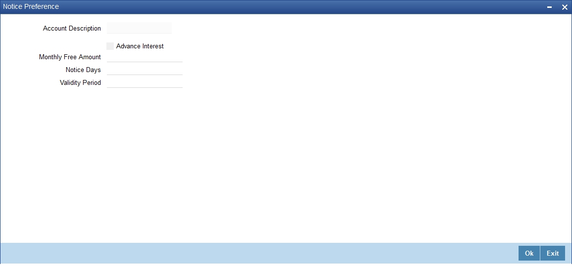 This shall be defaulted from the account class screen, where you had defined this facility for all accounts belonging to a class. The option specified at the account level will supersede that specified for the account class.