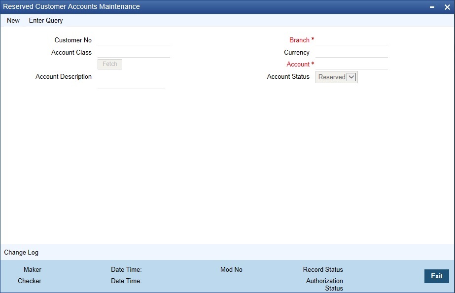 Refer the chapter ‘Maintaining Mandatory Information’ in the Core Entities User Manual for details about maintaining account classes.