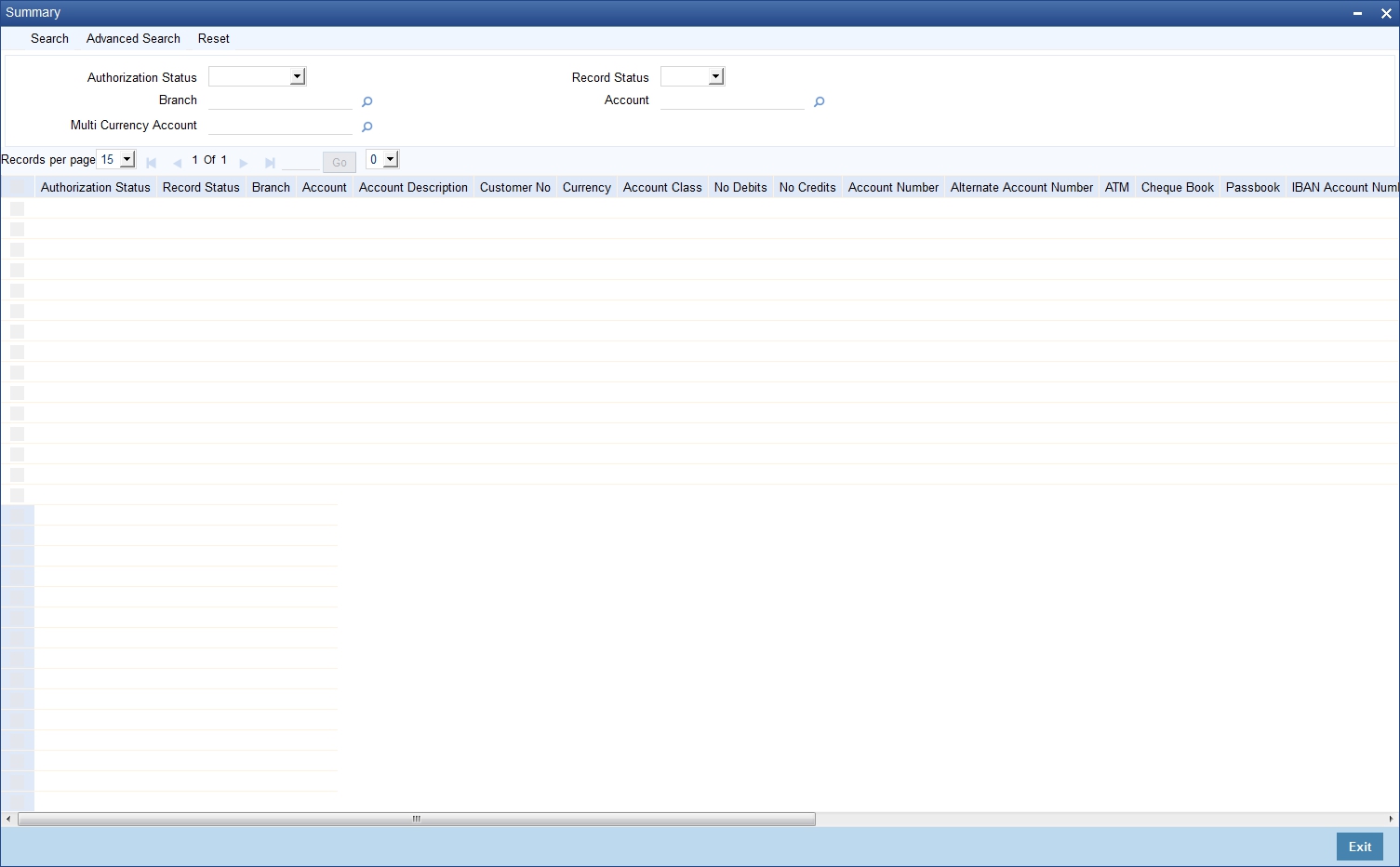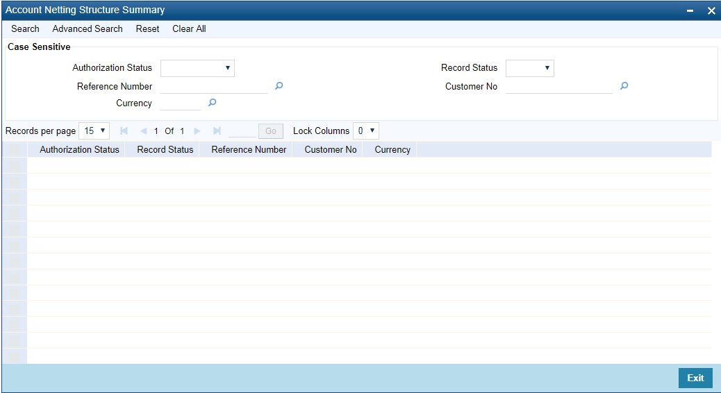 You can view the account netting structure details in the ‘Account Netting Structure Summary’ screen. You can invoke this screen by typing ‘STSACNET’ in the field at the top right corner of the Application tool bar and clicking the adjoining arrow button.