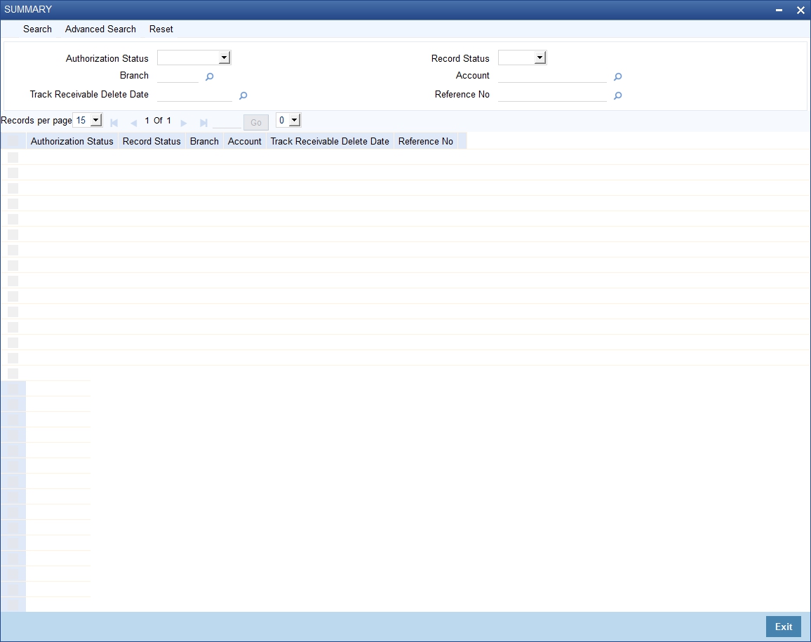 You can view the release of track receivables details maintained in the Release of Track Receivable Summary screen. You can invoke this screen by typing ‘STSTRKRL’ in the field in the top right hand corner of the application toolbar and clicking on the adjoining arrow button.