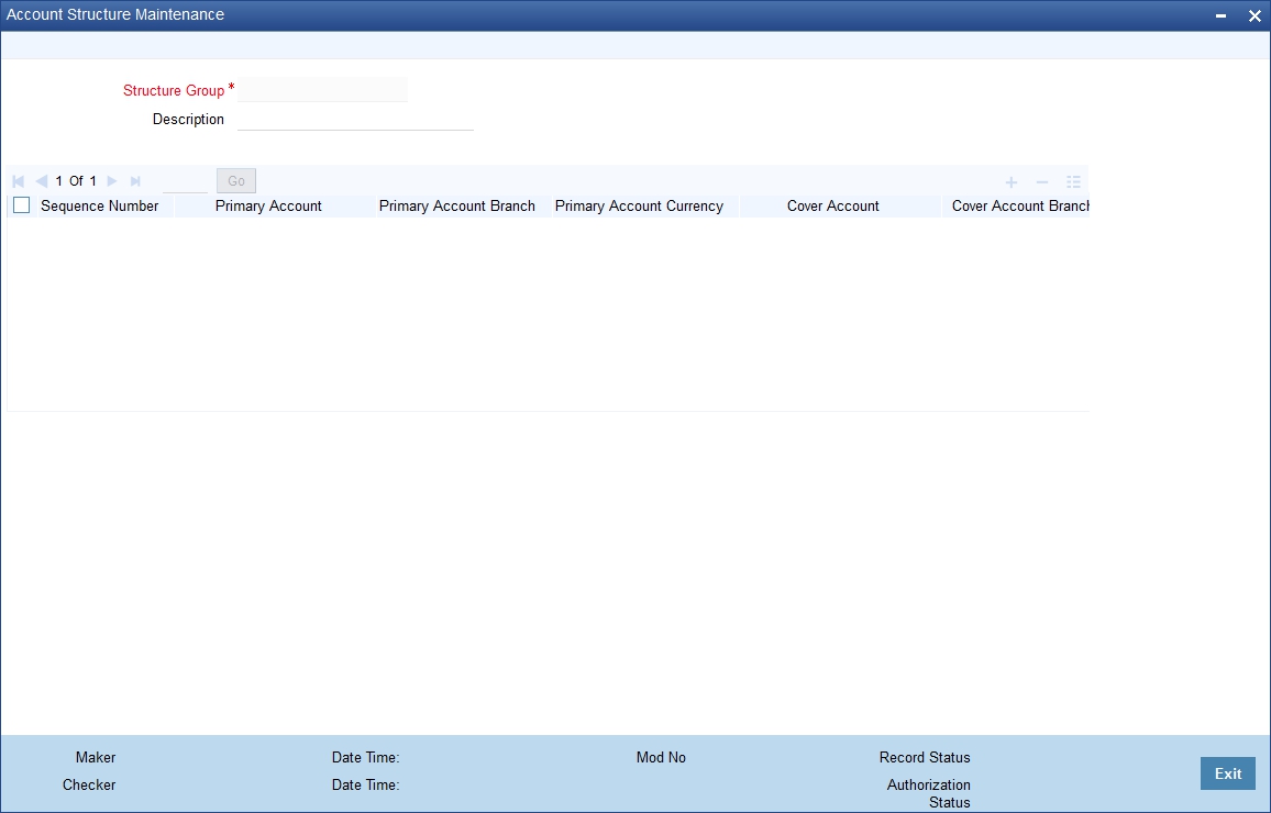 You can view the summary details of the account structure in the ‘Account Structure Maintenance Summary’ screen.