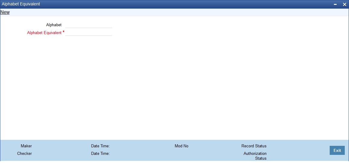 You can maintain alternative letters for a given alphabet or a combination of alphabets using ‘Alphabet Equivalent Mapping Maintenance’ screen. During a customer name search, the system will search for the equivalent or matching names based on this maintenance.