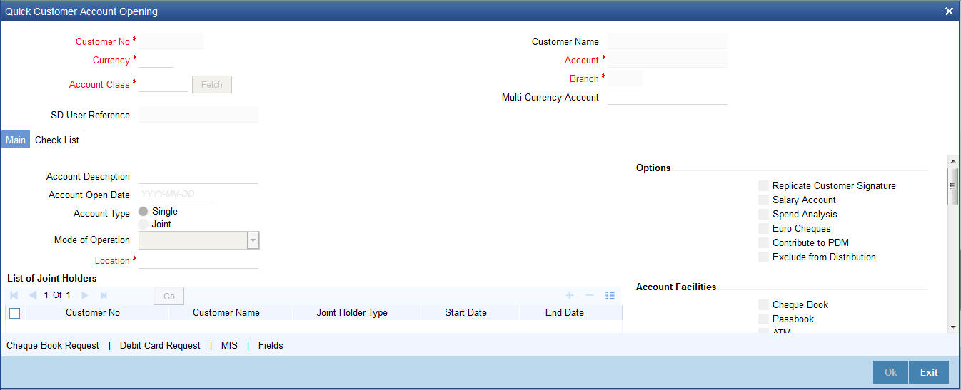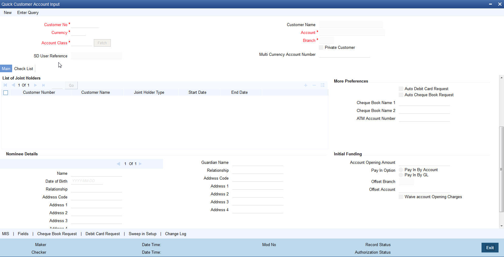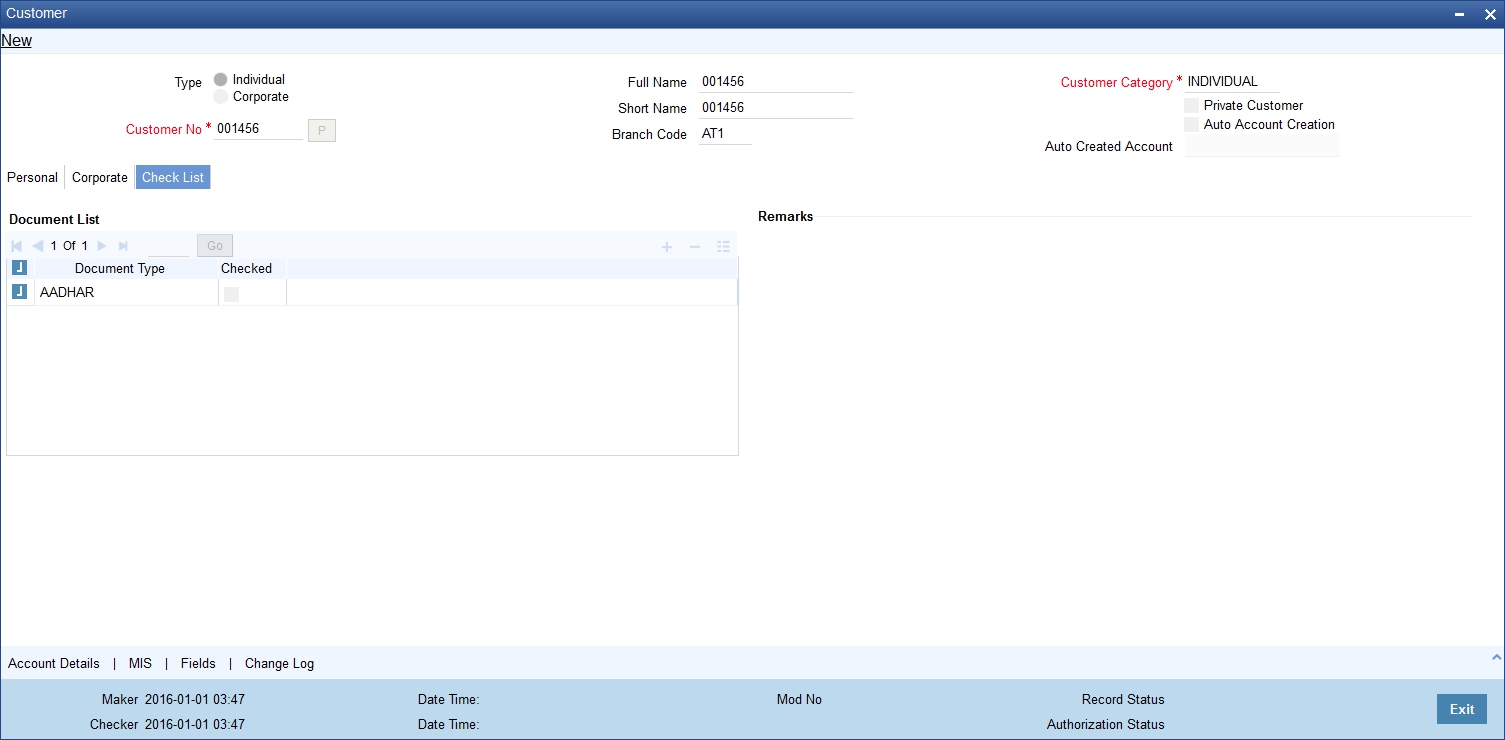 You can invoke the ‘Customer Maintenance’ screen by typing ‘STDCIF’ in the field at the top right corner of the Application tool bar and clicking the adjoining arrow button.