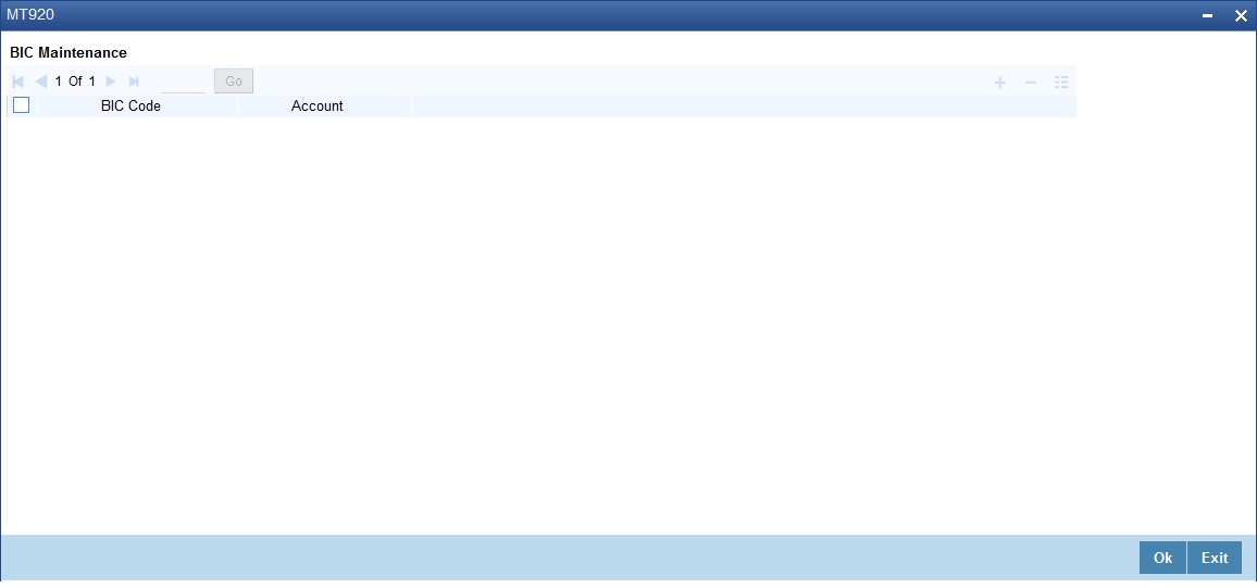 You can invoke the ‘Pin Code Maintenance’ screen by typing ‘STDPINCD’ in the field at the top right corner of the Application tool bar and clicking the adjoining arrow button.
