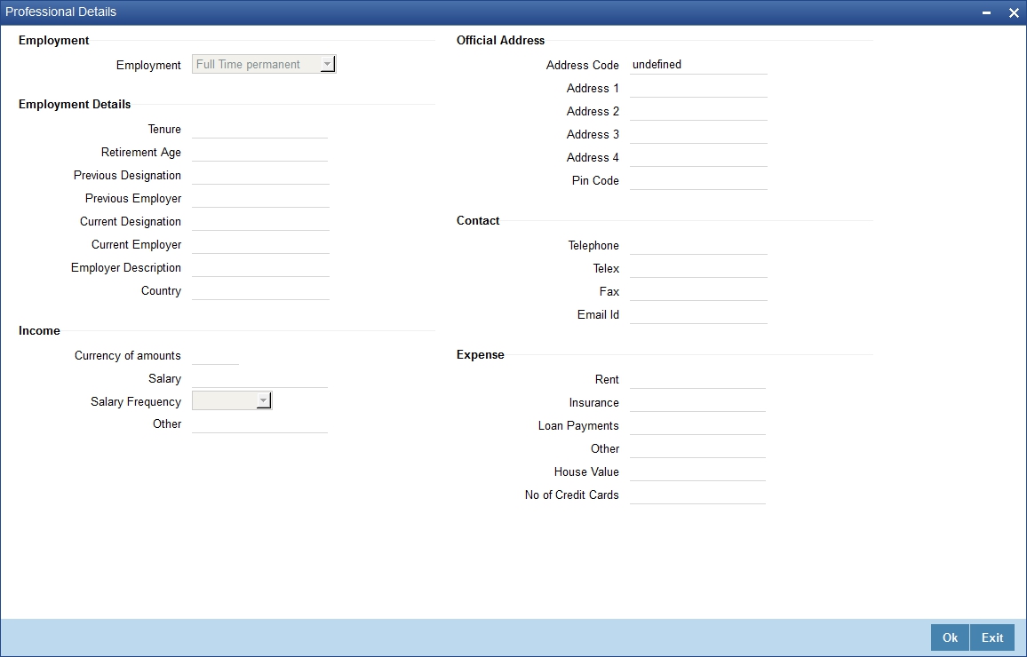 In the ‘Personal’ tab, you can maintain generic personal details of a customer. In addition, you can also maintain the domestic and professional details of the ‘individual’ type customer. You can do this by invoking the relevant screens by clicking on the respective buttons.
