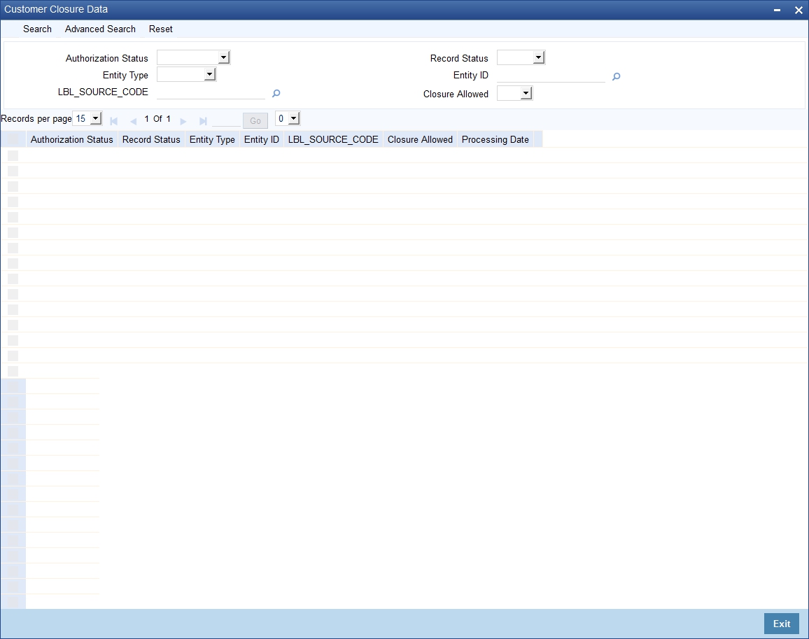 Therefore, records will be closed only if a record is available for the particular entity ID in the STSCUSCL screen and the ‘Closure Allowed’ field is updated as ‘Yes’.