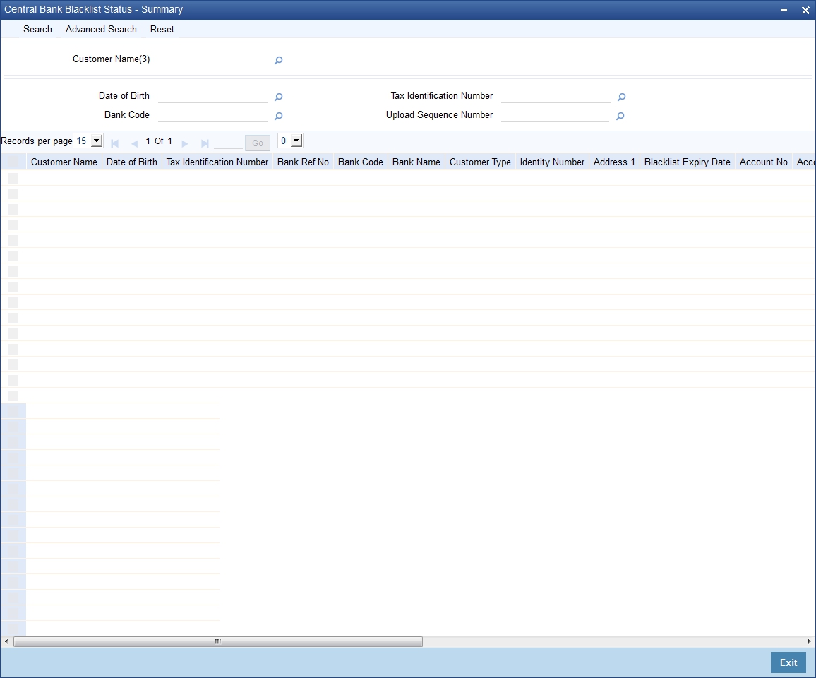 Click ‘Search’ button. The system identifies all records satisfying the specified criteria and displays the following details for each one of them: