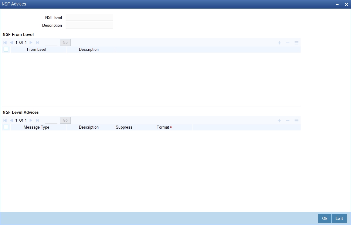 Click on the Advice button in the NSF level maintenance screen to invoke NSF Advice screen.