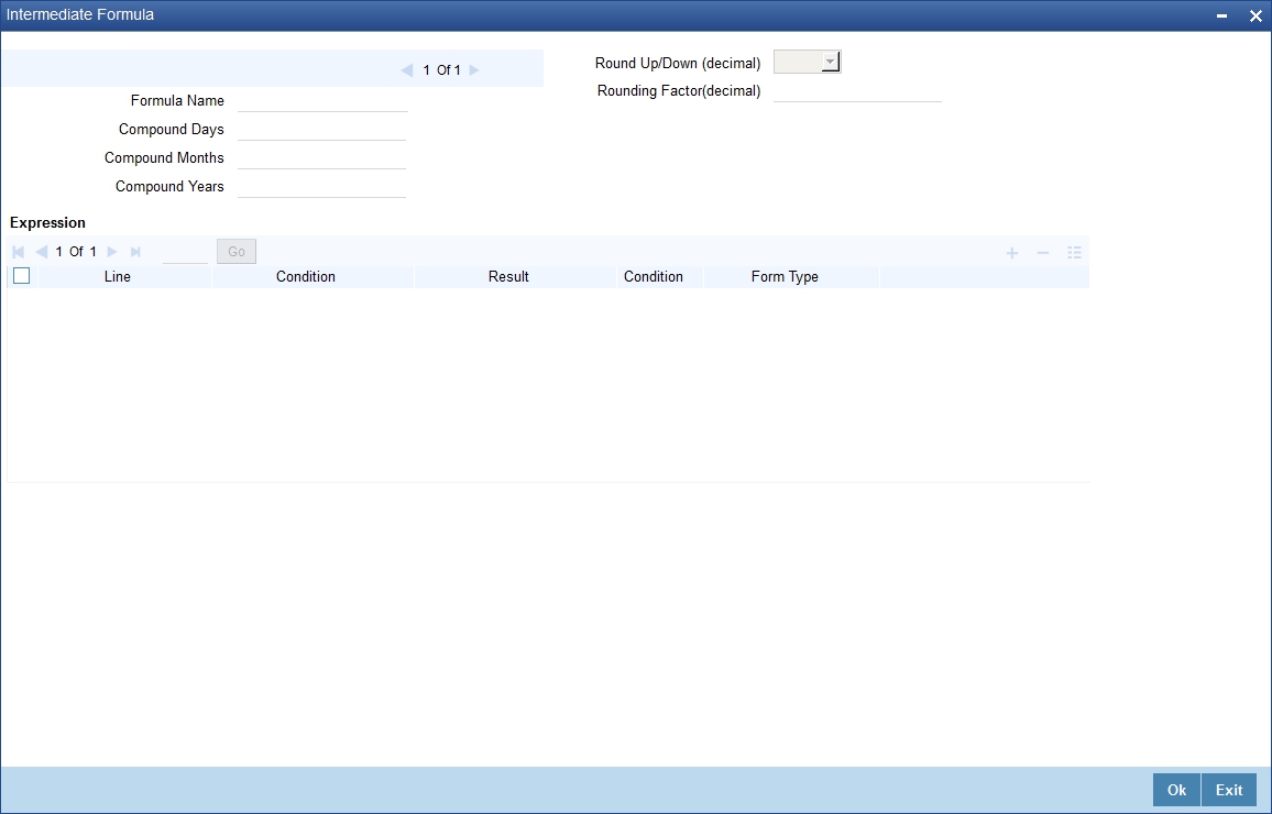 When you click on ‘OK’ in the message window, the message appears as ‘Please populate Default Tenor Details, Account Head and Transaction Codes’.