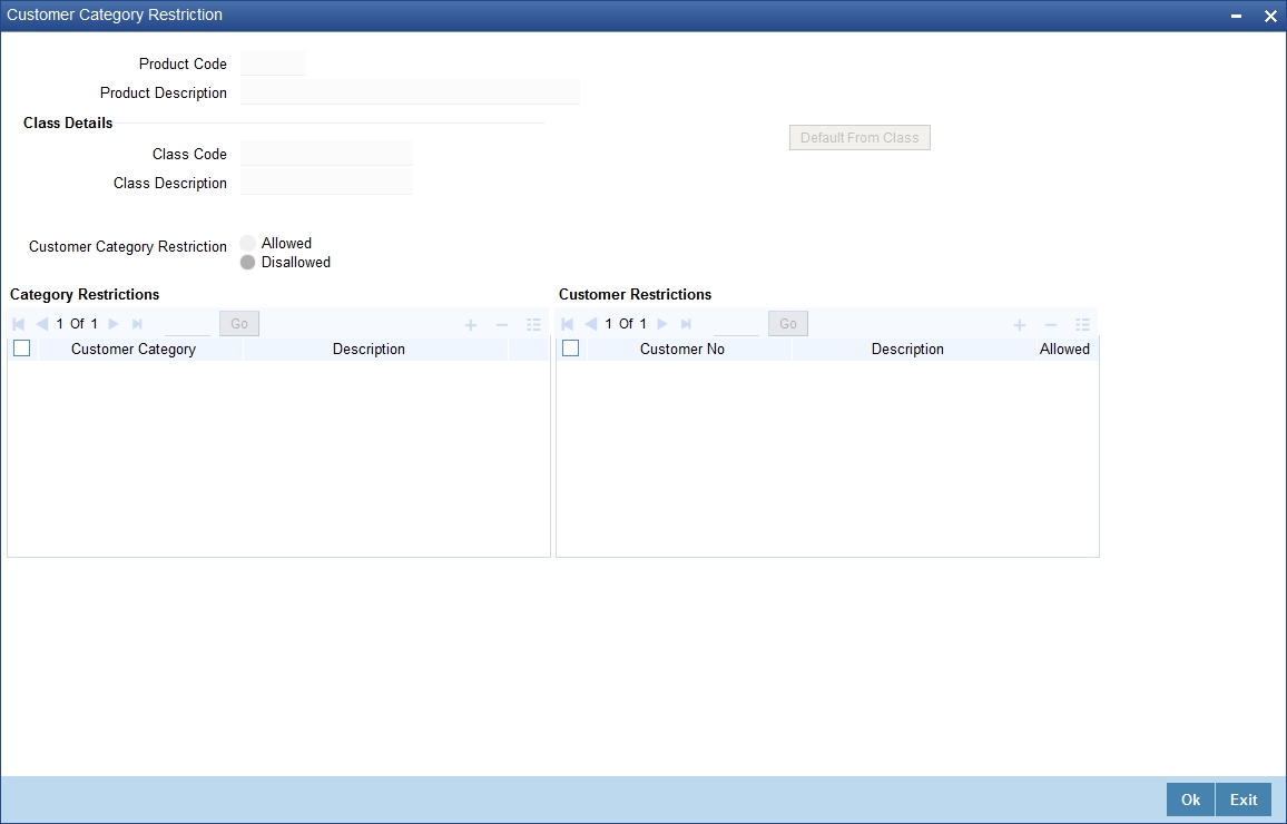 The branches that can offer the products are further determined by the branch restrictions defined for the products. You can capture product details in the ‘Islamic Financing Product’ screen.