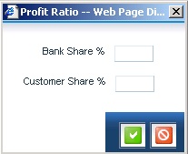 You need to specify the profit sharing details between the Mudarib and Rabbul-Mal using the ‘Profit Ratio’ screen. Click ‘Profit Ratio’ button in the ‘Account Details – Main’ screen and invoke this screen.