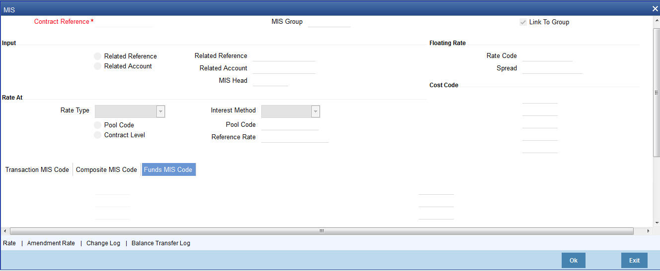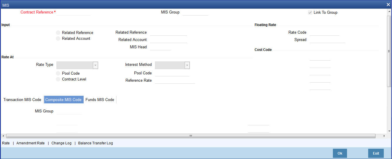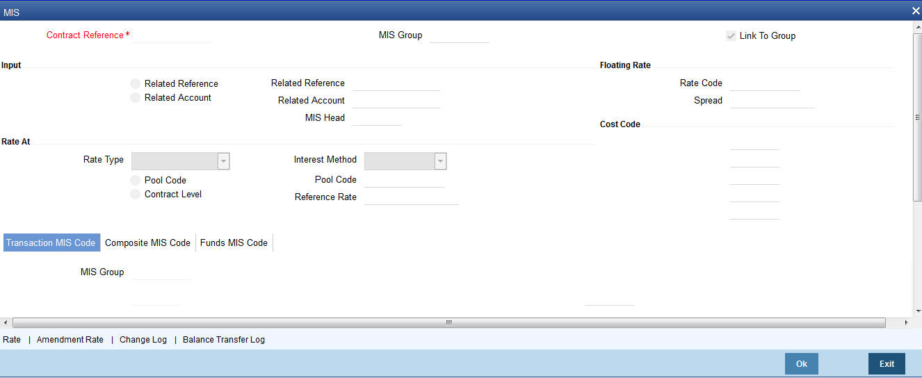 Click ‘Rate’ button on the ‘MIS’ screen and invoke the ‘Rate Details’ screen.