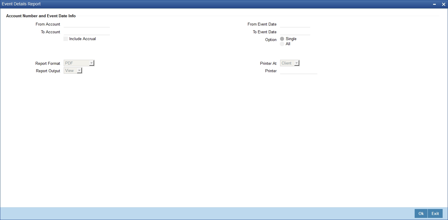 If you do not enter an account number in the above two fields, the system will display the event details of all accounts.
