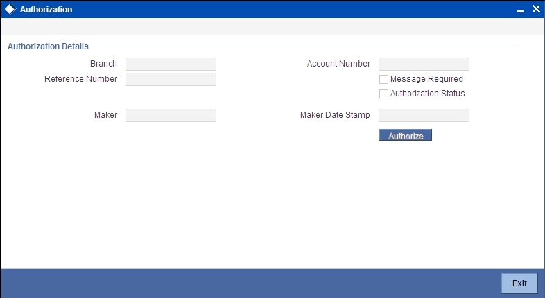 To authorize the manual disbursement, click Authorize icon on the Application toolbar. The account authorization screen is displayed.