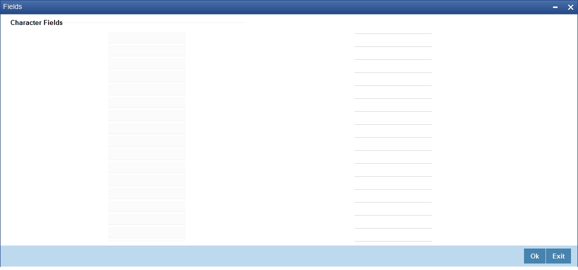 You can enter values for the UDFs that you have associated with the DSBR event in the ‘Account Event UDF’ screen. To invoke this screen, click ‘Fields’ button in the ‘Manual Disbursement’ screen.