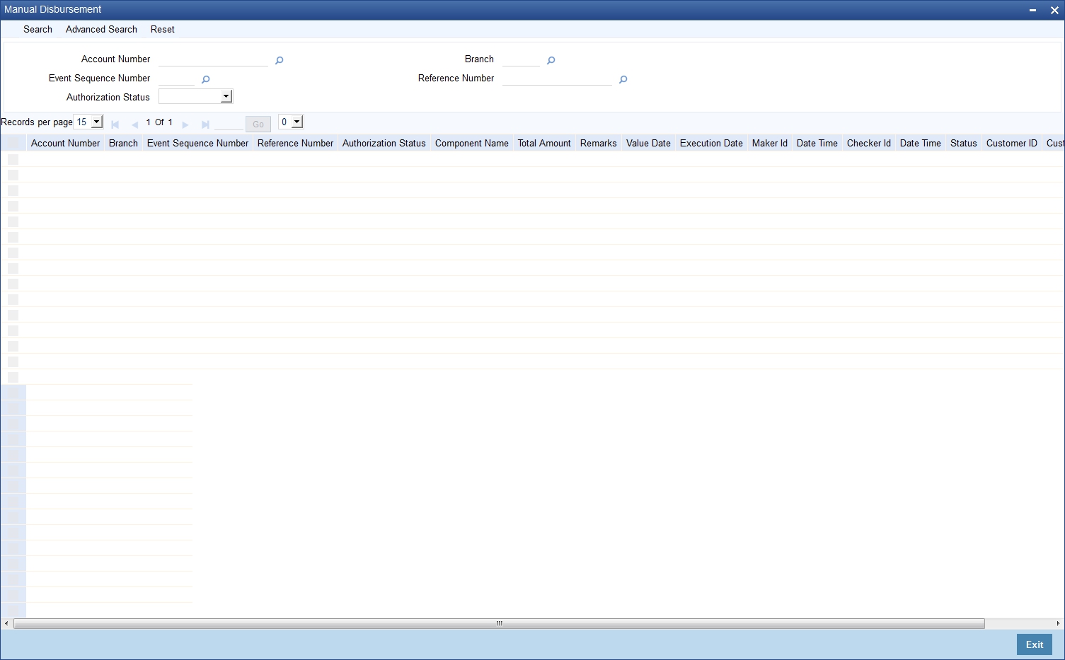 Click Exit button to exit and return to the ‘Manual disbursement’ screen.