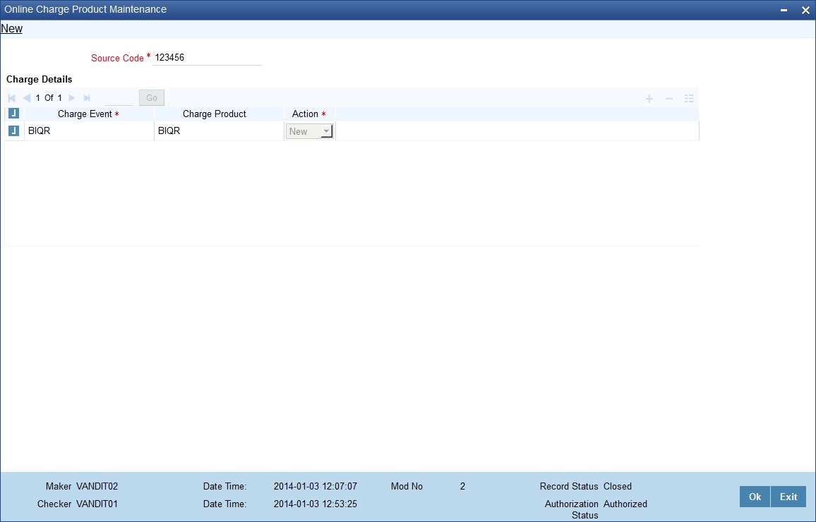 Oracle FLEXCUBE allows you to maintain charge products and events in the ‘Online Charge Product Maintenance’ screen. You can invoke this screen by typing ‘STDCHGMN’ in the field at the top right corner of the Application tool bar and clicking on the adjoining arrow button.