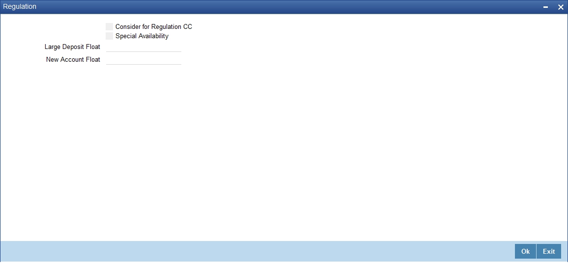 In addition to the accounting entry and charge definition you will also have to maintain the following ARC details to incorporate the Regulation CC requirements: