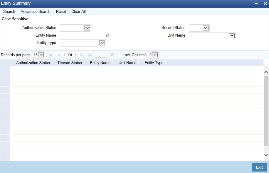 You can view the entity types in the ‘Entity Summary’ screen. You can invoke this screen by typing ‘STSENMNT’ in the field at the top right corner of the application tool bar and clicking the adjoining arrow button.