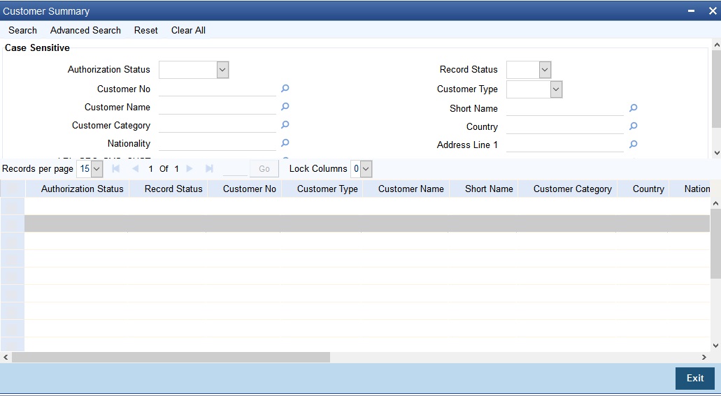 Once you have specified the search parameters, click ‘Search’ button. The system displays the records that match the search criteria for the following: