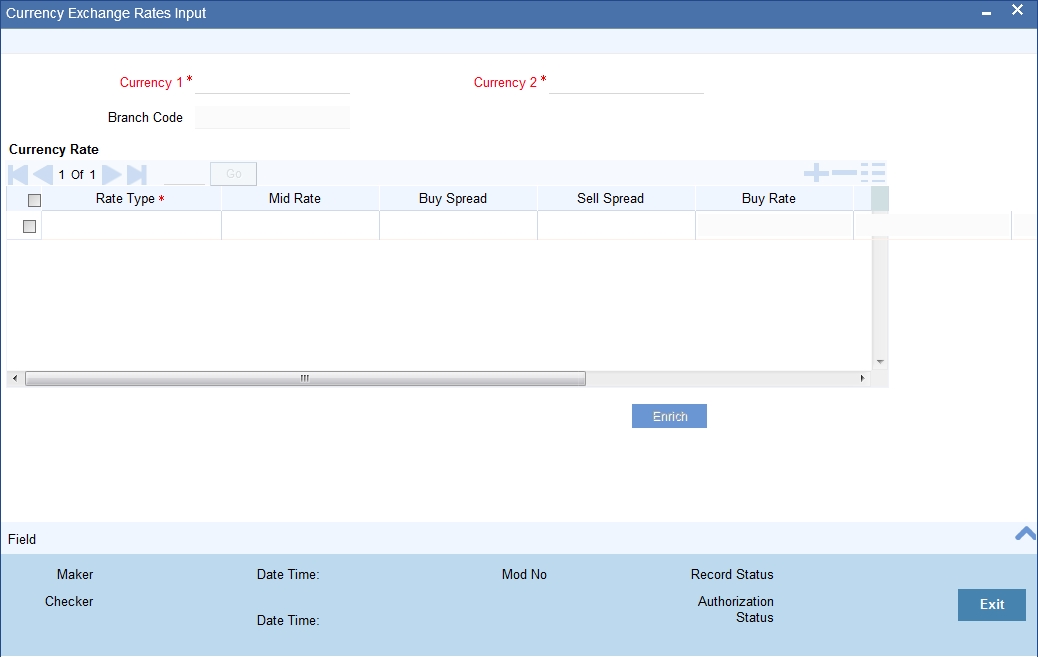You can invoke this screen by typing ‘GIDCRCFN’ in the field at the top right corner of the Application tool bar and clicking the adjoining arrow button.