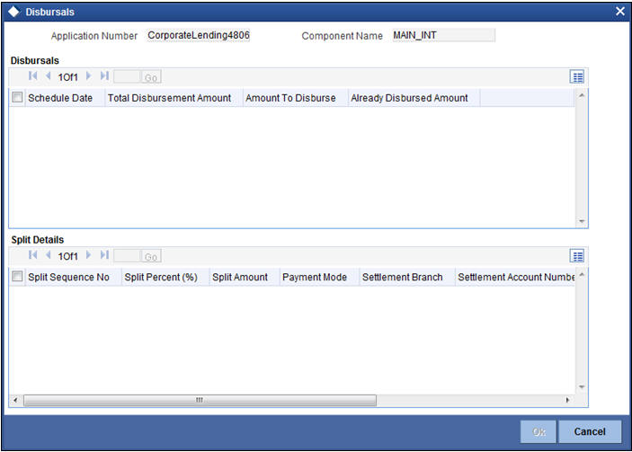 You can capture the Loan Disbursal schedules details in ‘Disbursals’ screen. You can invoke this screen by clicking ‘Disbursement Details’ button.