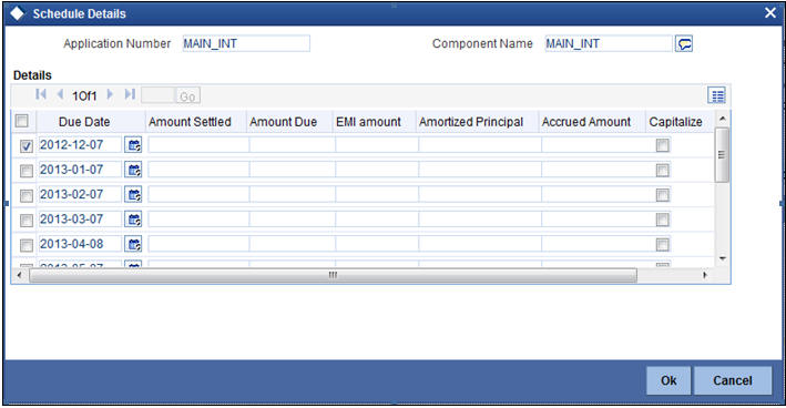 For each component of the components listed, the system calculates and displays the details like the Due Date, Amount Due, EMI Amount and Amortized Principal.