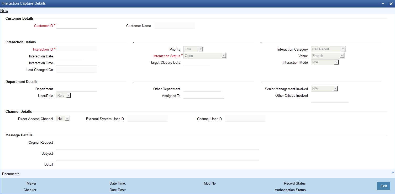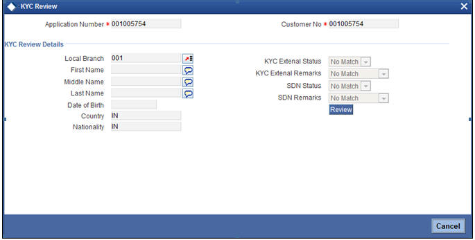 After speaking to the prospect/customer, FCUBS user informs correct or additional documents required. When the status is selected as 'Closed', it will be mandatory for the user to select the reason code in the sub screen which will be populated at the save operation |