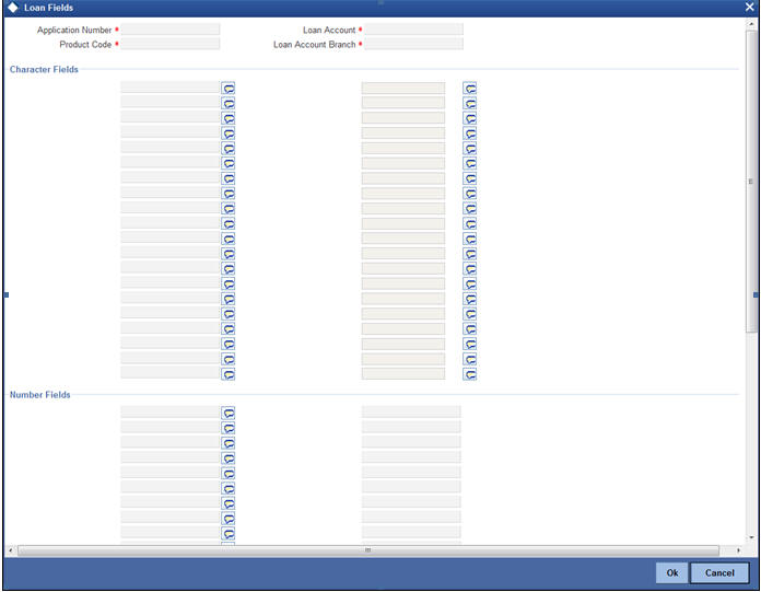 You can capture the Loan UDF details by clicking ‘Loan Fields’ button in ‘Corporate Loan Underwriting’ screen. System displays the ‘Loan UDF’ screen where you can capture the details.
