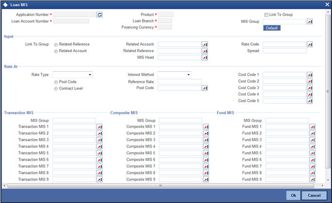 You can capture the Loan MIS details by clicking ‘Loan MIS’ button in ‘Corporate Loan Underwriting’ screen. System displays the ‘Loan MIS’ screen where you can capture the details.