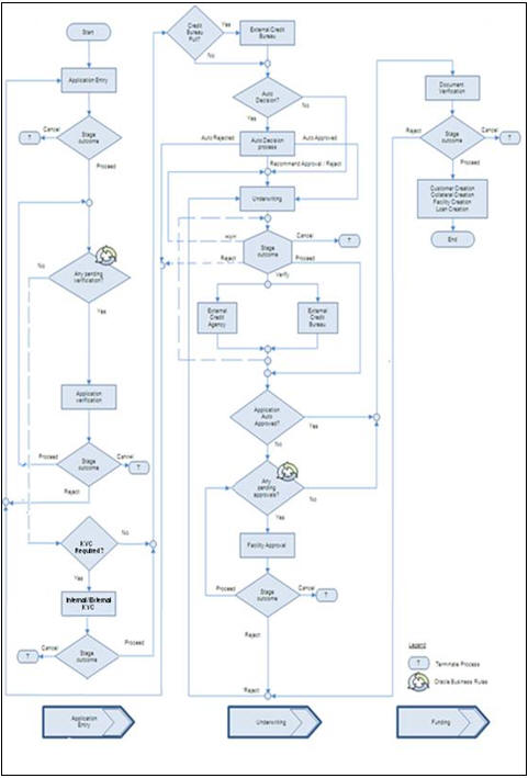The process of loan origination gets initiated when a prospective customer approaches the bank, with a loan account opening request or when the bank approaches a prospective customer, taking lead from its database. In case of a bank–initiated request, the process moves forward only if the prospective customer is interested. The entire process is carried out in multiple stages and on successful completion of each stage, it moves automatically to the next stage.