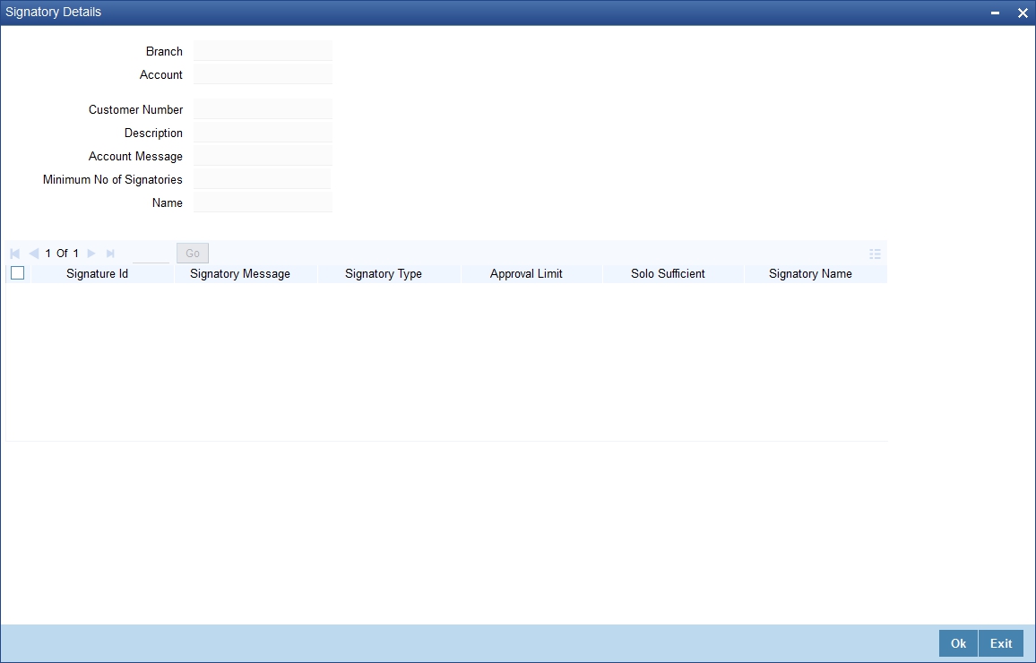 Click ‘Search’ button. The system identifies all records satisfying the specified criteria and displays the following details for each one of them.