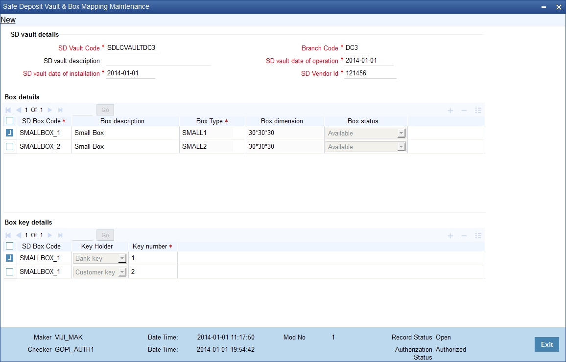 When you close a vault-box maintenance, the system will allow the closure only if there are no active SDB contracts for the maintenance.