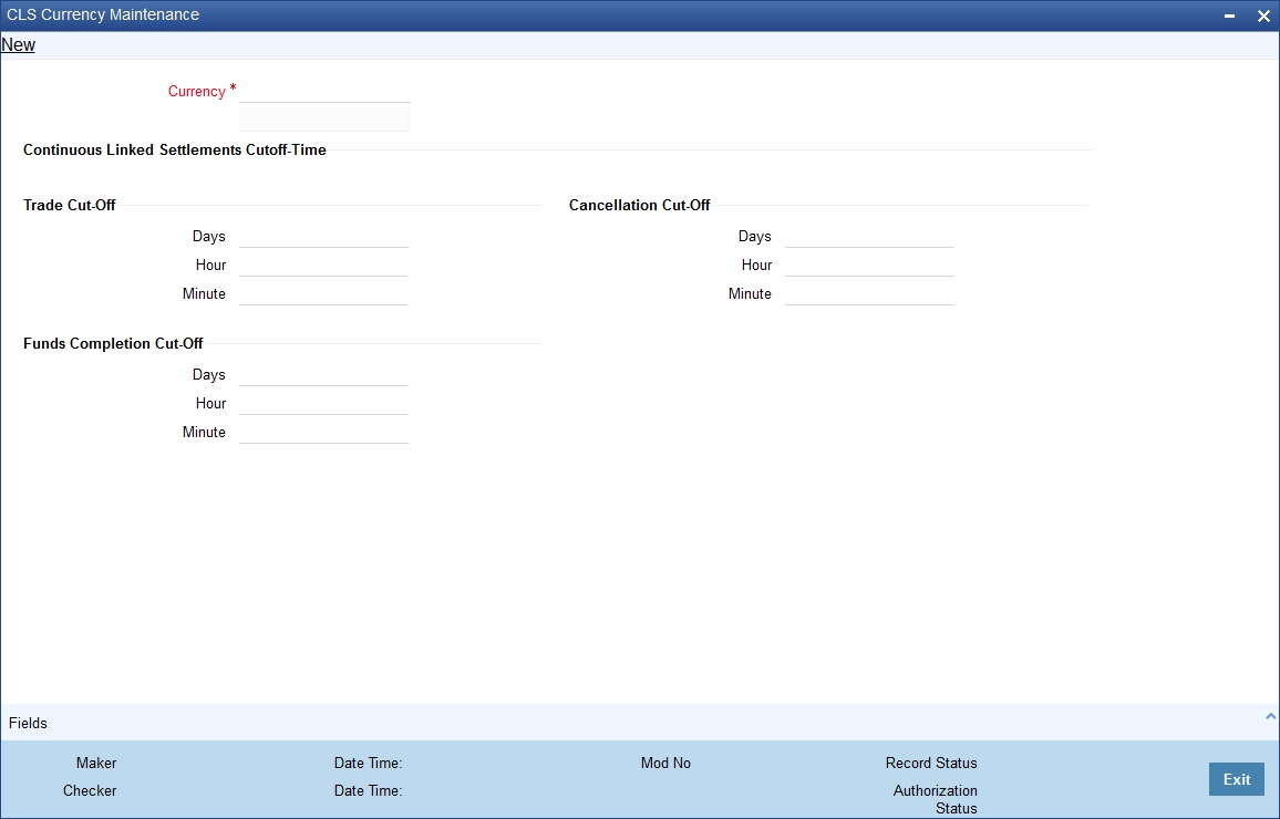 Here, you have to capture the funding cut-off period for a deal. This will ensure that the funds are made available before the settlement date of the deal. This value will be used only for information purposes. Again, the time is with respect to the branch time zone.