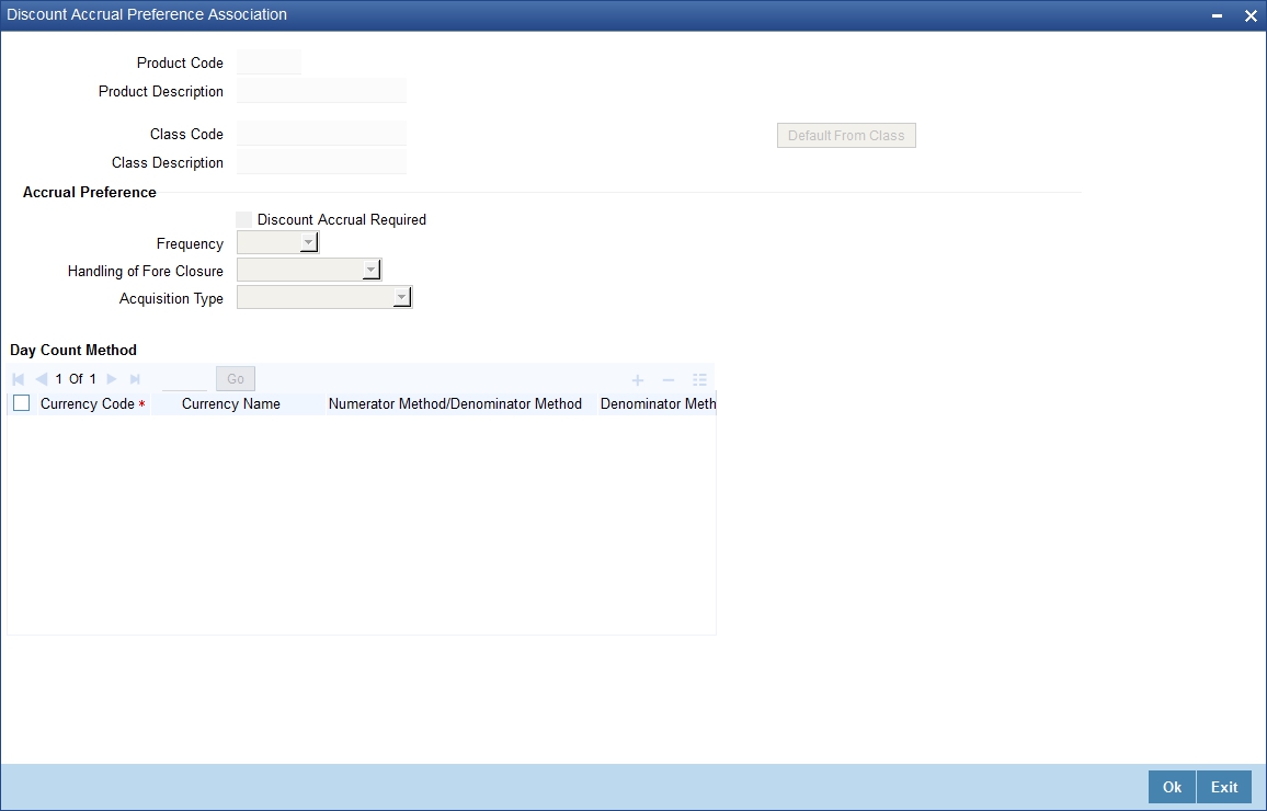 Click ‘Discount Accrual’ button to invoke the ‘Discount Accrual Preference Association’ screen. Refer to the Discount Accrual chapter in the same user manual for more details.