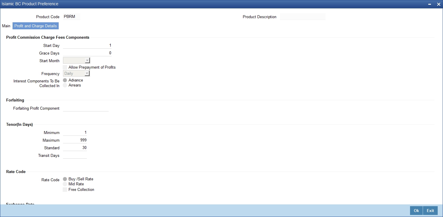 If you are creating an export product of Bills under LC with Tenor as ‘Usance’, you can indicate that the bills coming under this product can be forfaited, by checking this option.