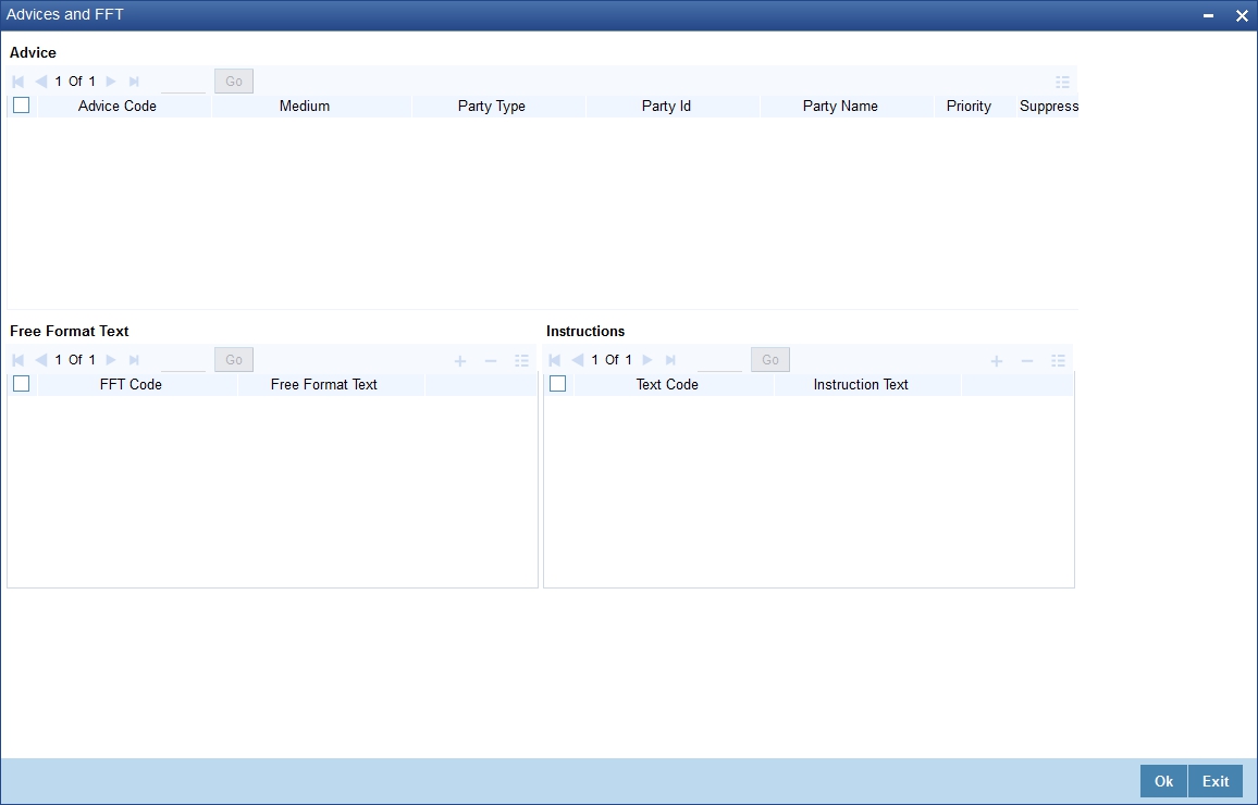 If advices are to be generated, for the event, it is mandatory for you to also specify the medium through which an advice is to be transmitted. An advice that is generated can be transmitted Mail, TELEX or SWIFT You can select the appropriate medium code from the option list.