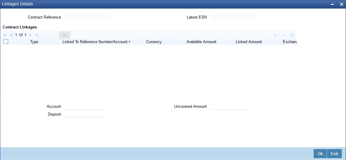 Clicking this link invokes the Contract Linkages screen. Here, you can link the bill to funds available in an account or deposit. |