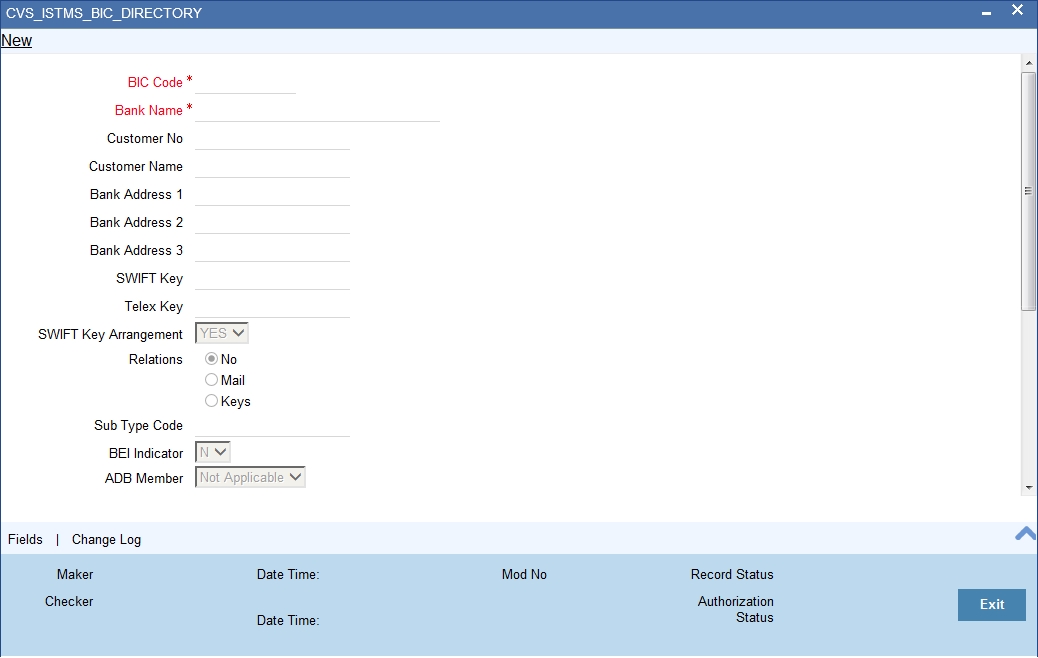 When the media type of the party is SWIFT, and the customer address you have specified happens to be a BIC customer, the system automatically displays the related BIC details in the BIC Code Details screen (‘ISDBICDE’).