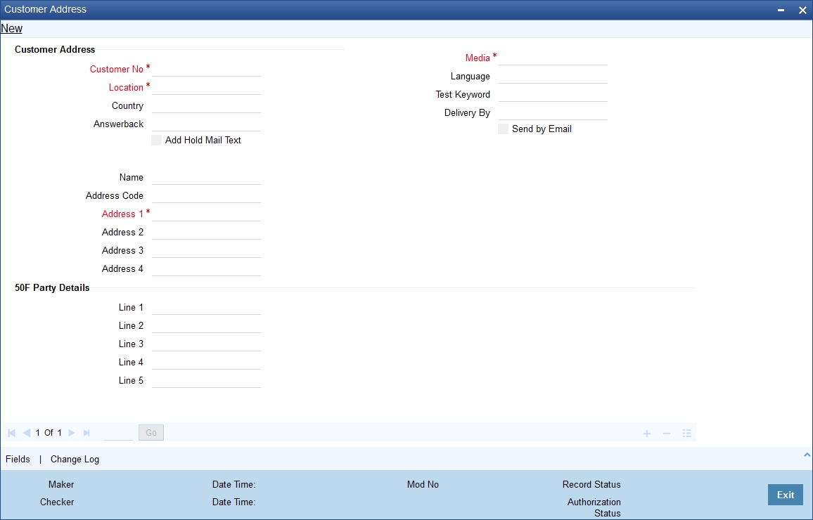 When you specify the CIF ID, the system checks whether you have maintained multiple media addresses for the customer. If you have maintained multiple media addresses, a list of all the media addresses will be displayed in a separate window.