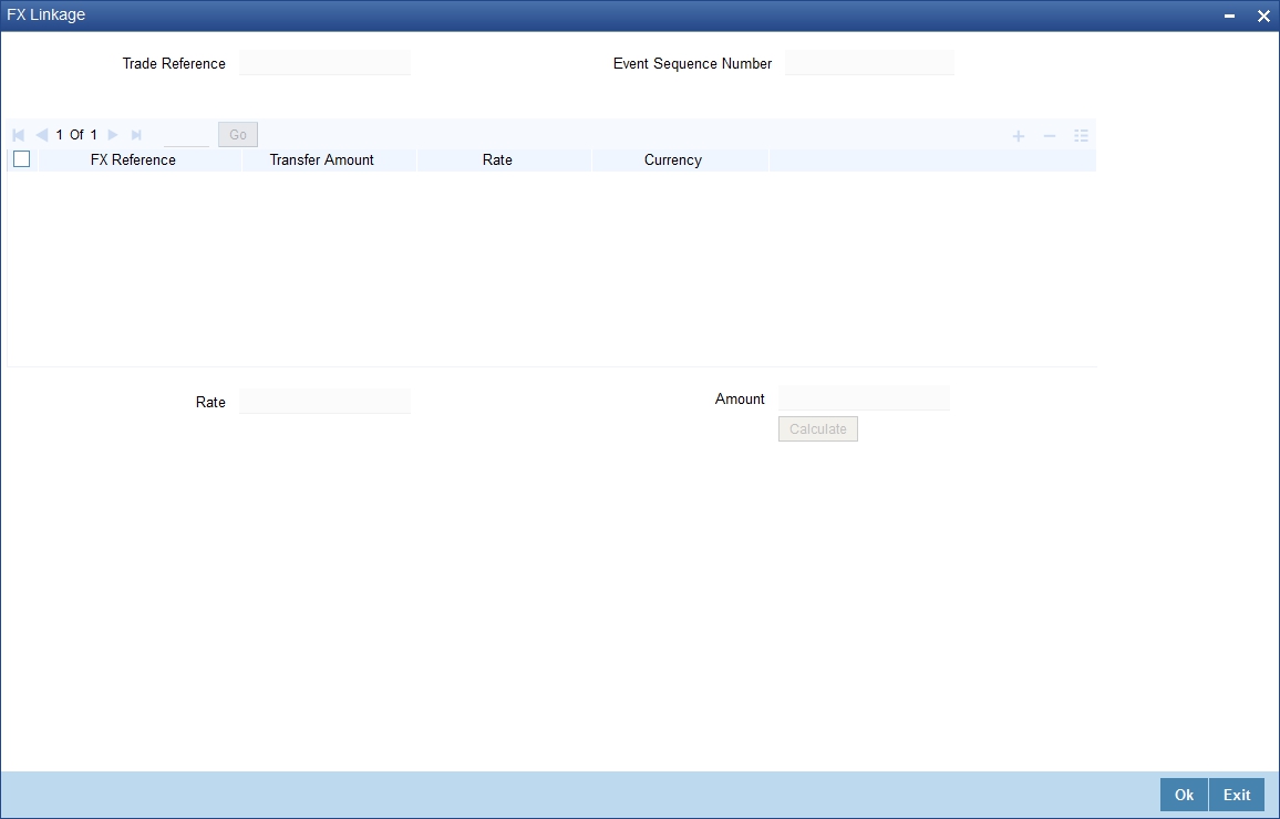 This link invokes a screen in which you can link a bill involving a specific counterparty with FX deals involving the same counterparty. |