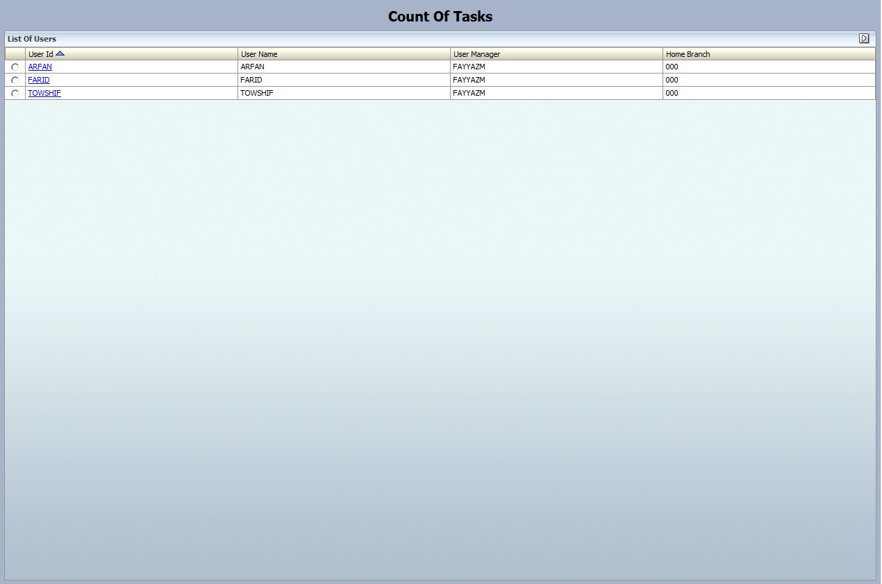 You can view the number of subordinates under the logged in supervisor. The supervisor can invoke the proceeding report by clicking on the subordinate user and the process for which the progress is to be viewed.