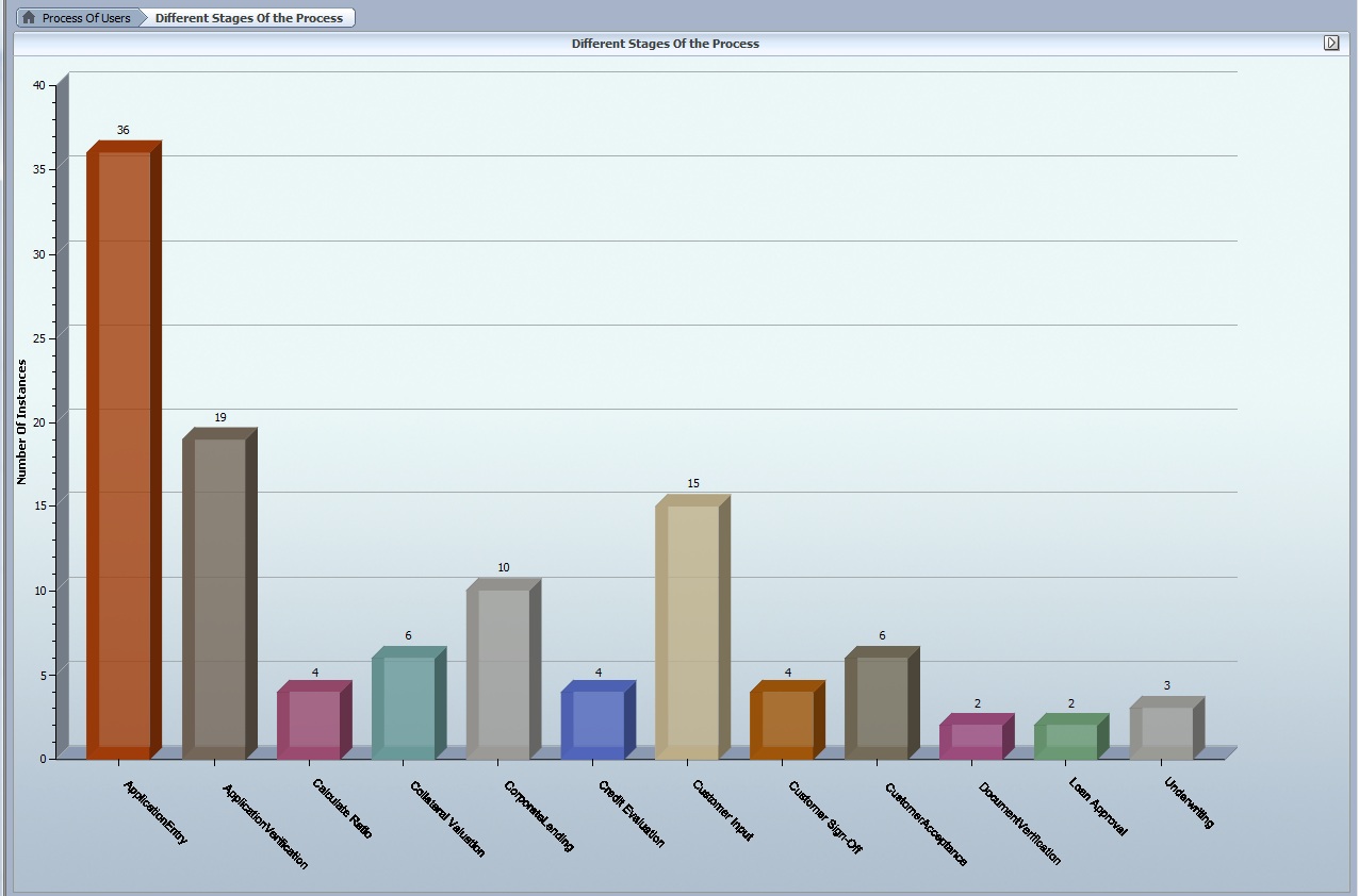 You can view the number of subordinates logged in the Oracle BAM through this report. The supervisor can invoke the proceeding report by selecting the subordinate user and the process name for which the progress should be assessed.