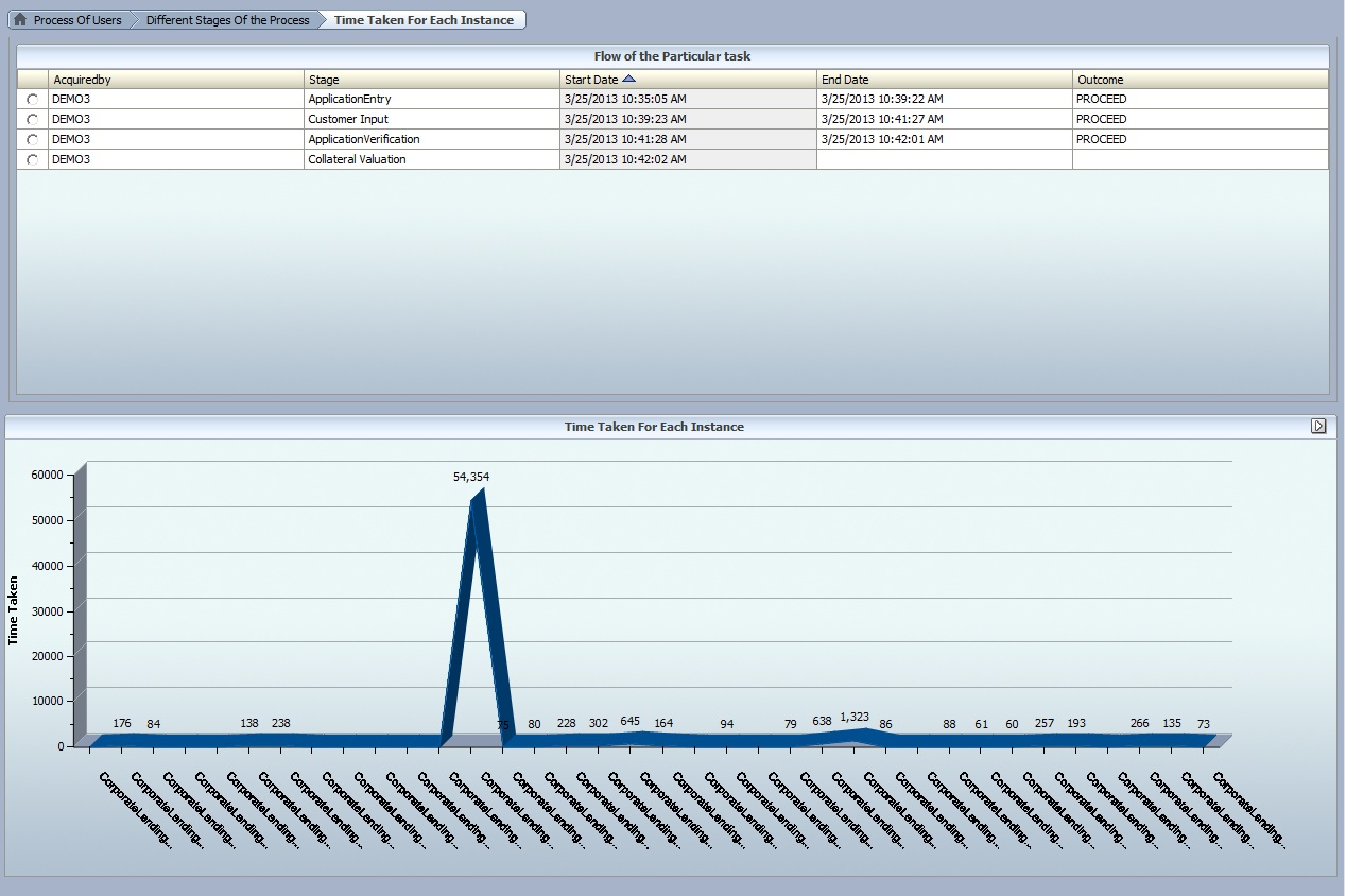The supervisor can determine the minimum, maximum and average time taken by the subordinate for processing the application at a particular stage.