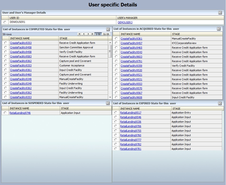 Click on the user ID to view the user specific details. The user specific details includes the number of tasks acquired, completed, expired and suspended by the user and the supervisor.