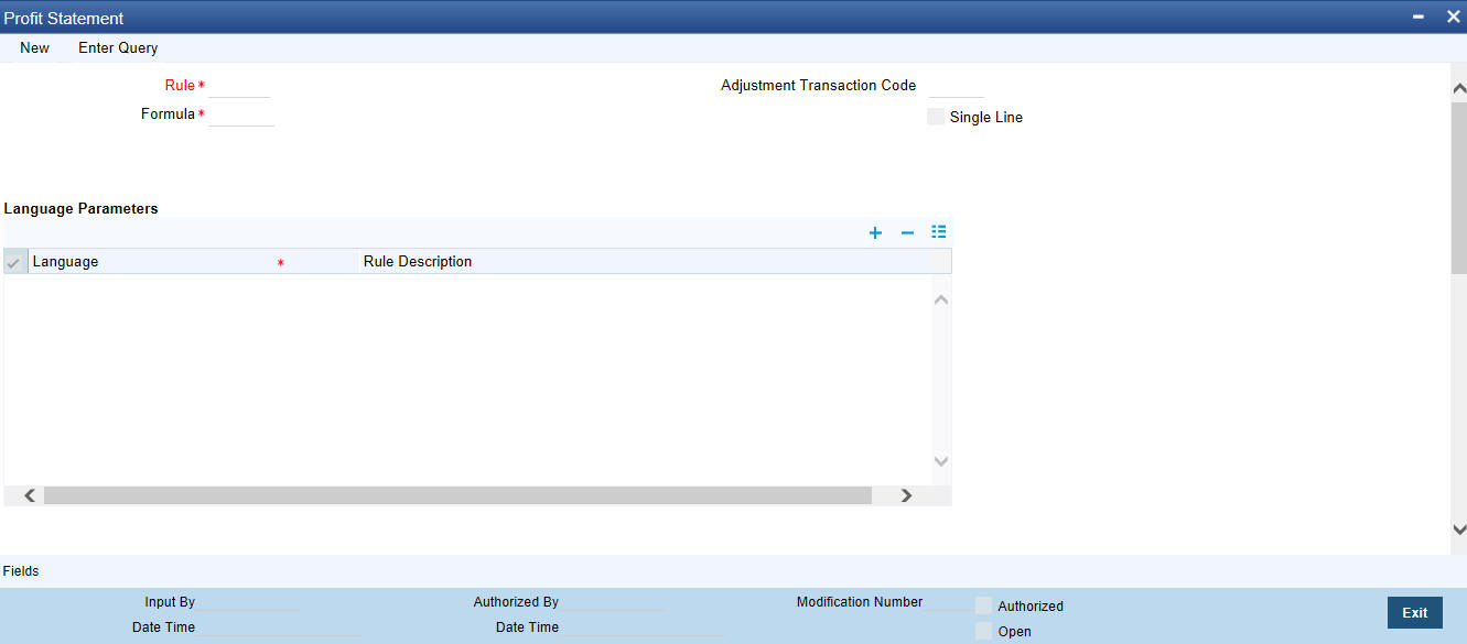 In Oracle FLEXCUBE, you can build profit statements to suit the requirements of your bank. You can define the details that you would like to include in profit statements in the ‘Profit Statement Maintenance’ screen.